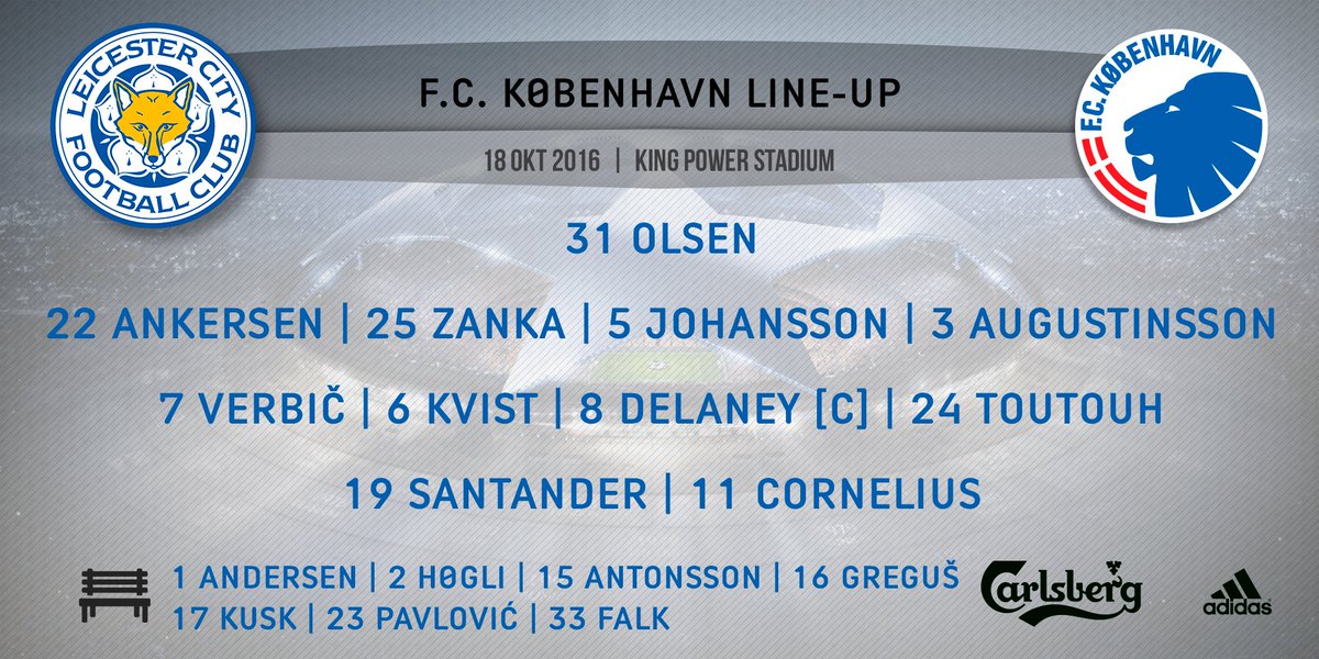 Tonight’s Starting XI: Schmeichel, Simpson, Huth, Morgan (c), Fuchs, Mahrez, Drinkwater, King, Albrighton, Slimani, Vardy. #LeiFck