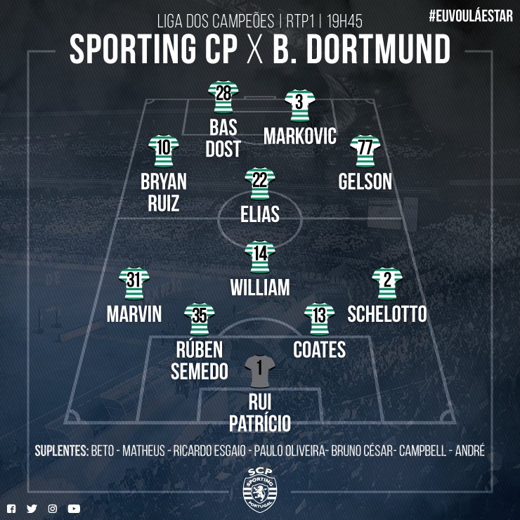 BVB: Bürki, Ginter, Sokratis (C), Bartra, Passlack, Weigl, Dembélé, Kagawa, Götze, Pulisic, Aubameyang #scpbvb #UCL