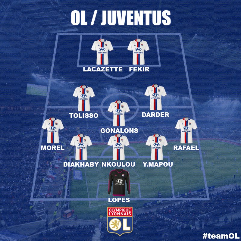#Juve XI: Buffon; Barzagli, Bonucci, Evra; Dani Alves, Khedira, Lemina, Pjanic, Alex Sandro; Dybala, Higuain #OLJuve #UCL