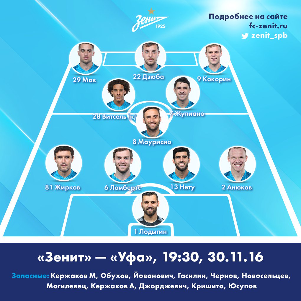 Запасные: Шелия, Никитин, Марсиньо, Диего Карлос, Фатай, Зубарев, Сафрониди, Батюнин, Обляков.