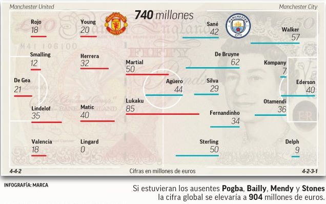 Но это дерби покорило другим. Говорят, что в последние годы звезды все больше предпочитают переезжать в другие чемпионаты. Издание Marca привело интересную статистику. Подсчитав сумму стоимостей ориентировочный составов, журналисты выяснили, что это самое дорогое дерби в истории. Испанцы насчитали общую сумму в 740 миллионов евро. И это при том, что в составе «МЮ» не мог сыграть Поль Погба.