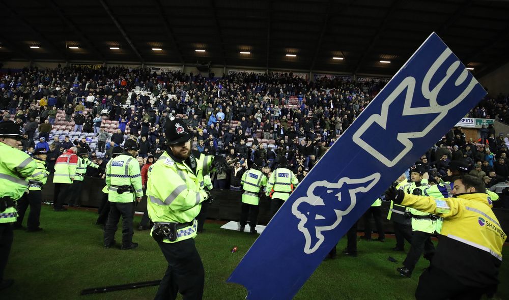 Фанаты «Уигана» так радовались успеху, что побежали на поле. Один из них засмотрелся на своих героев и не заметил Серхио Агуэро. Задетый аргентинец толкнул болельщика в ответ, едва не спровоцировав потасовку. Пришлось разнимать.