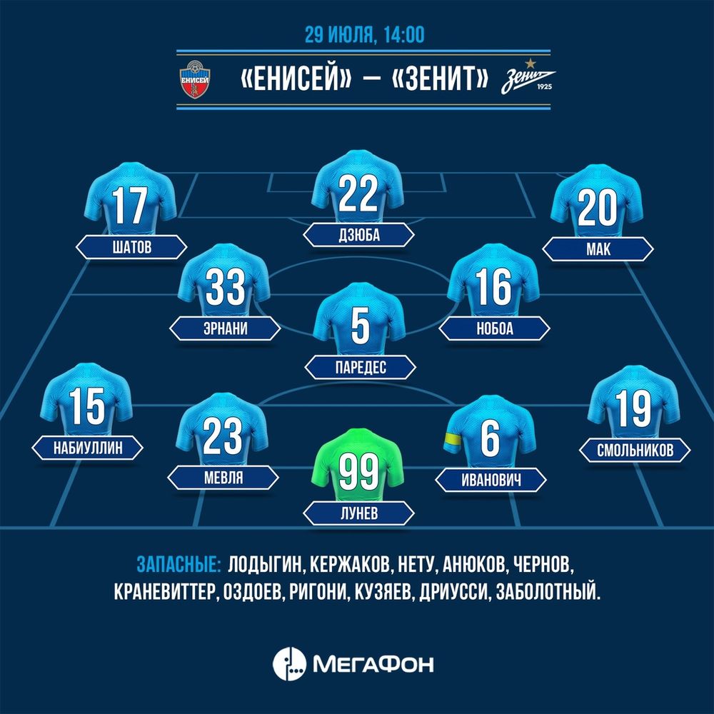 3. Семак дает шанс каждому. Набиуллин сидел на скамейке половину сезона и сыграл только две игры чемпионата. Встреча с «Енисеем» открыла Набиуллину место в старте, а в запас из «Зенита-2» вернулся даже Александр Анюков.