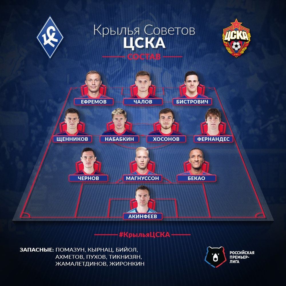 Стартовый состав ЦСКА на игру с «Крыльями Советов» получился таким: