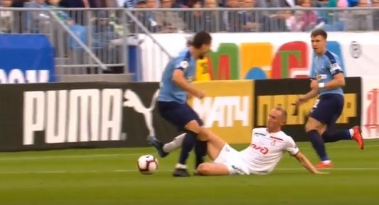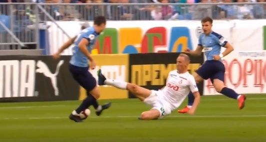 Сначала Игнатьев в центре поля просто влетел в ноги Полуяхтову. Игроку «Крыльев» сильно повезло, что обошлось без травмы. Арбитр был рядом, но усмотрел в жестоком эпизоде только фол на желтую карточку.