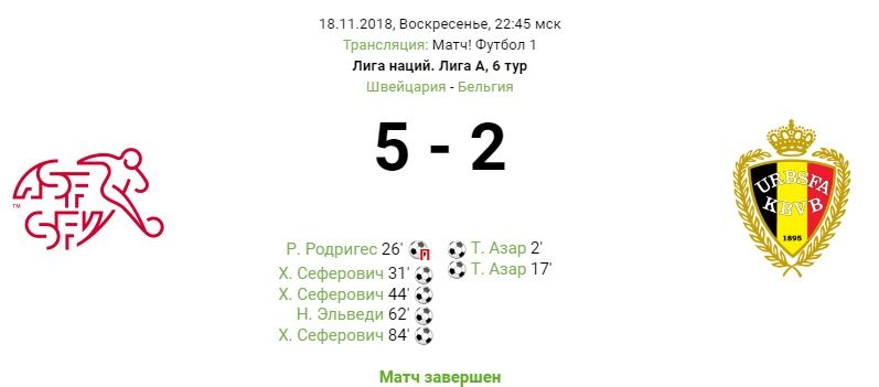 Швейцария уделала Бельгию