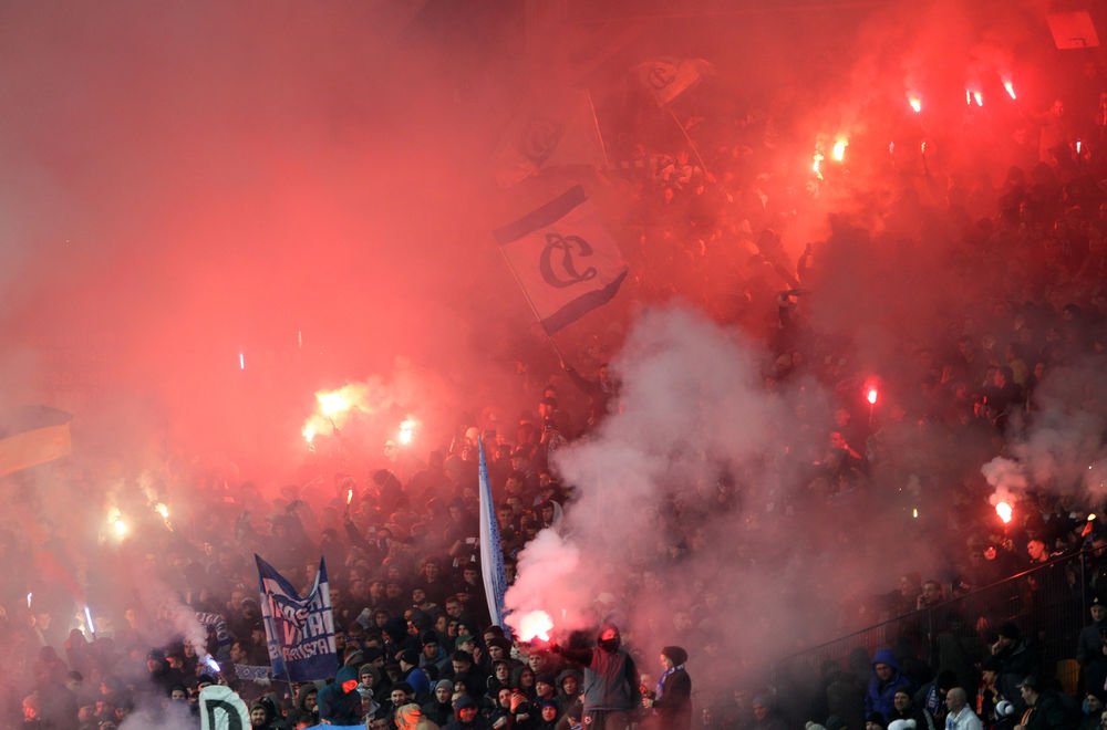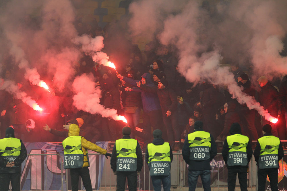 Первый матч украинцы играли на выезде, и хозяева устроили горячий прием. Перед игрой местные ультрас нападали на приезжих болельщиков «Динамо» с ножами и дубинками. Избиение продолжалось до приезда местной полиции, но к тому времени были нужны машины скорой помощи. Около 30-ти киевлян получили побои средней тяжести, а несколько пострадавших вместо стадиона попали в больницы с ножевыми ранениями.