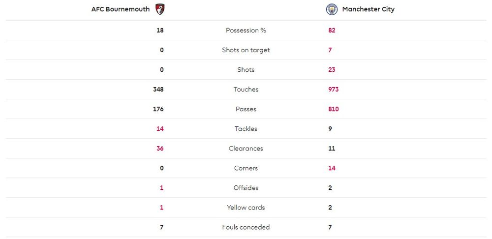 Это статистика матча «Борнмут» – «Манчестер Сити».