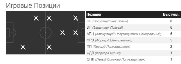 Портал Whoscored дает вот такую карту позиций, на которых Сутормин играл за «Оренбург». Он без проблем отрабатывал даже на позиции правого защитника, но основную пользу все-таки приносил в центре поля.