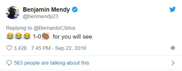В воскресенье Силва в шутку опубликовал пост в твиттере, где сравнил Менди с талисманом испанского бренда по производству арахиса в шоколаде. Пост прожил примерно час, после чего был удален – на португальца набросились в комментариях.