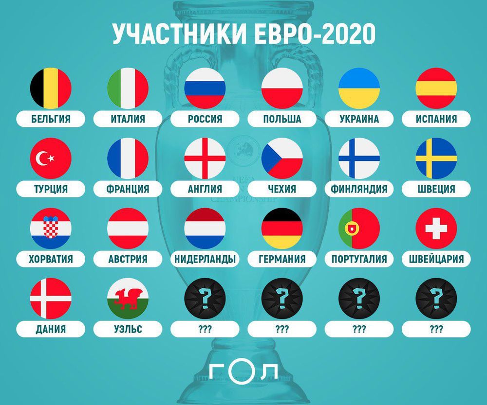4) Уэльс, Финляндия, 4 победителя плей-офф Лиги наций