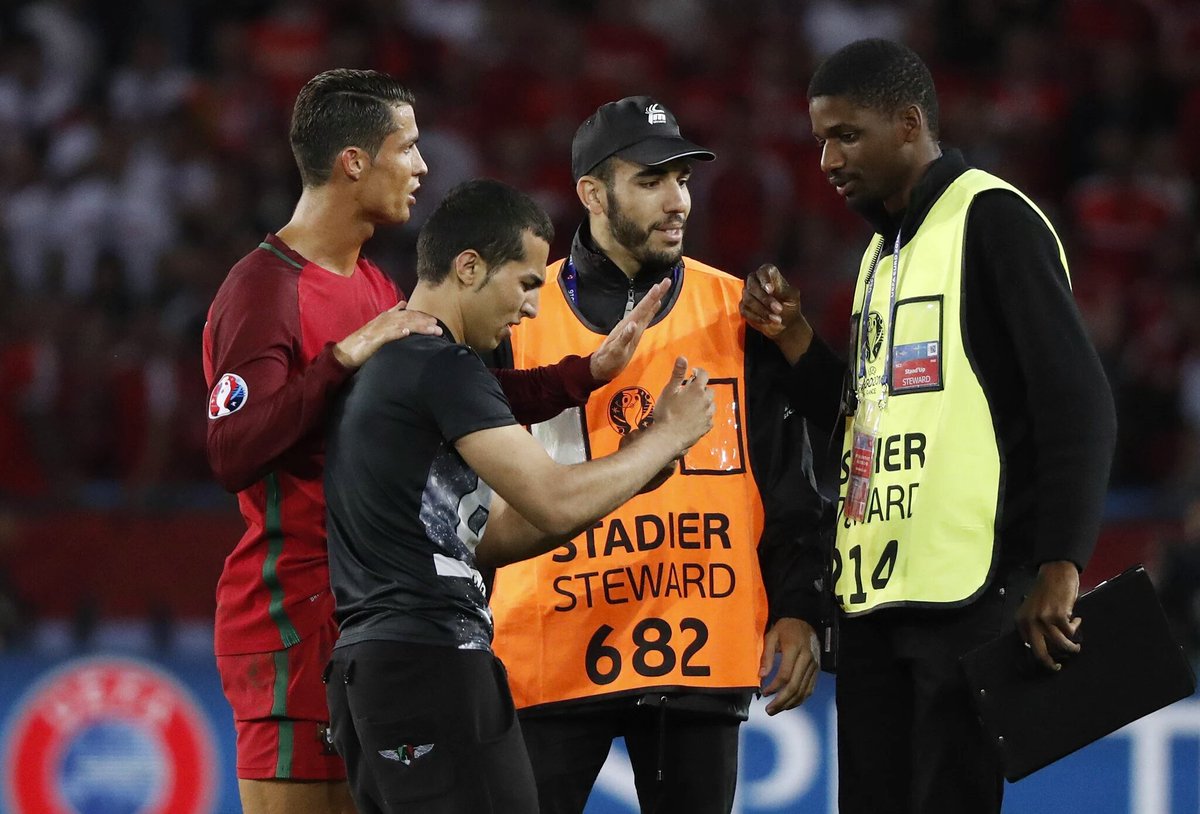 После игры нападающий португальцев Криштиану Роналду, который не забил пенальти, сфотографировался с выбежавшим на поле болельщиком. При этом футболист не позволил сотрудникам стадиона вывести подбежавшего к нему фаната.