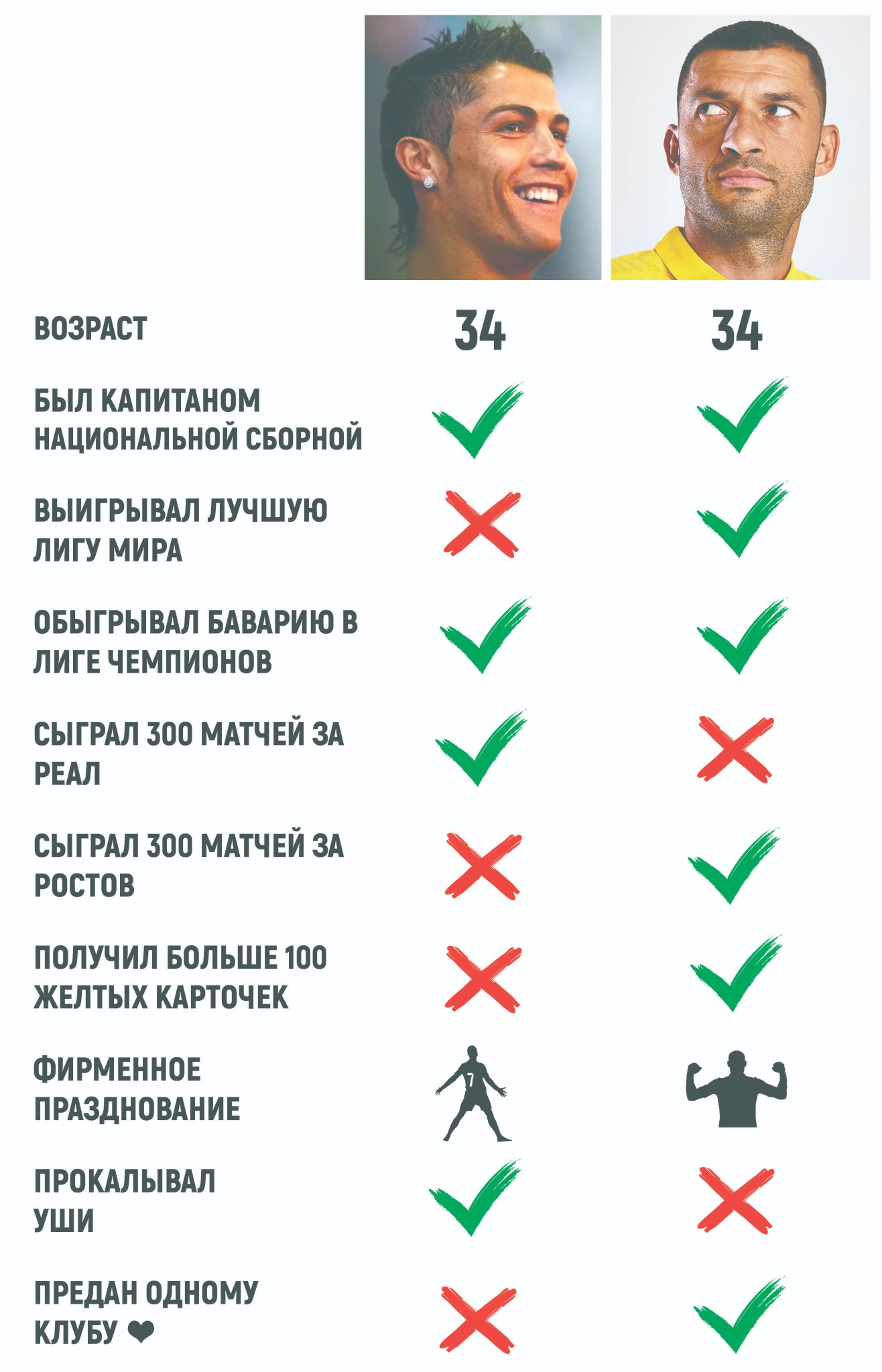 Давайте сравним достижения обоих футболистов к 34-м годам», – говорится в сообщении желто-синих.