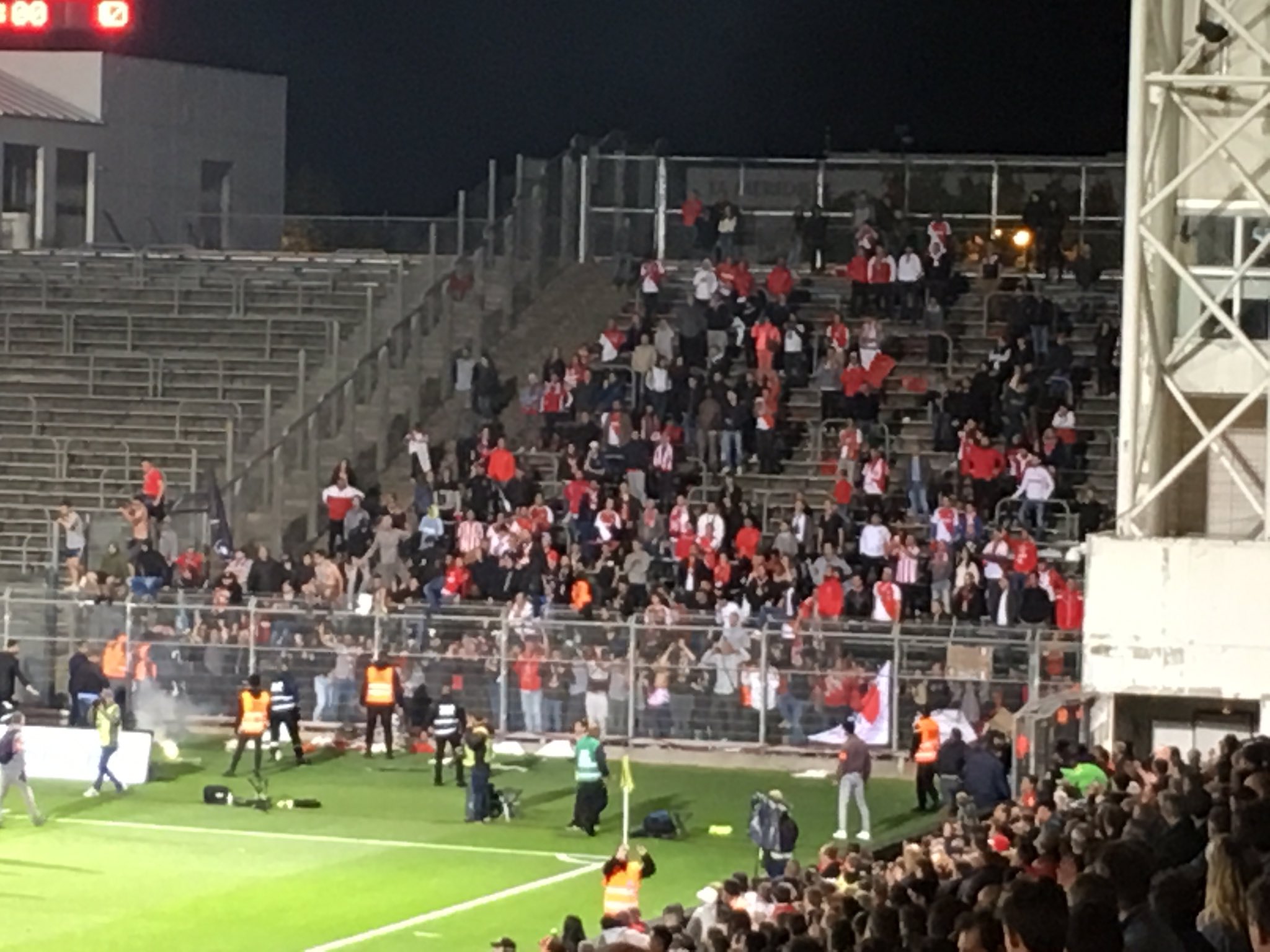 В 36 туре Лиги 1 «Монако» в гостях уступил «Ниму» (0:1). После игры болельщики проигравшей стороны пытались прорваться на поле. Фото доступно ниже.