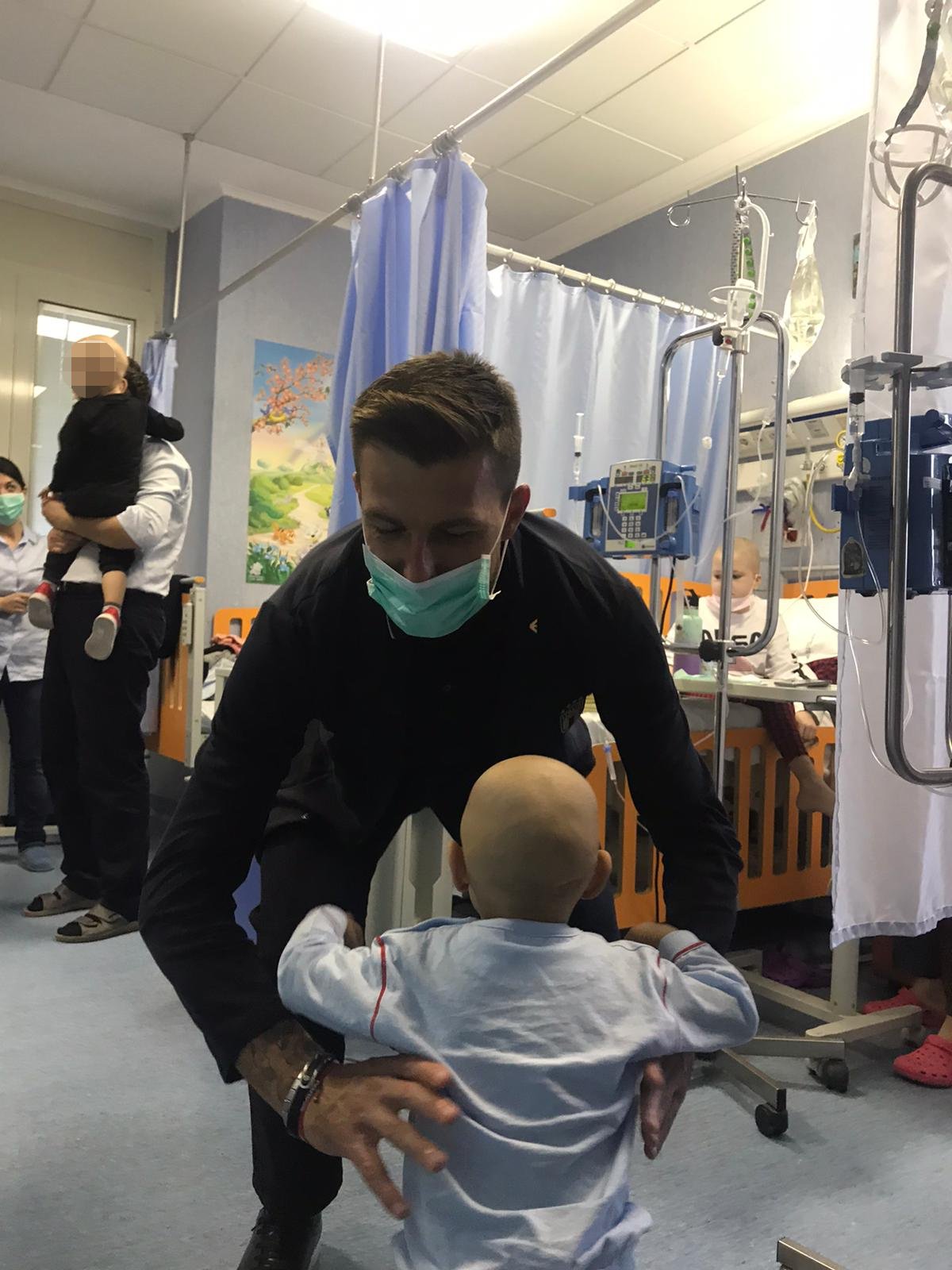 Сборная Италии в преддверии матча седьмого тура отборочного цикла Евро-2020 против Греции посетила детскую больницу в Риме. Футболисты вручили подарки юным пациентам.