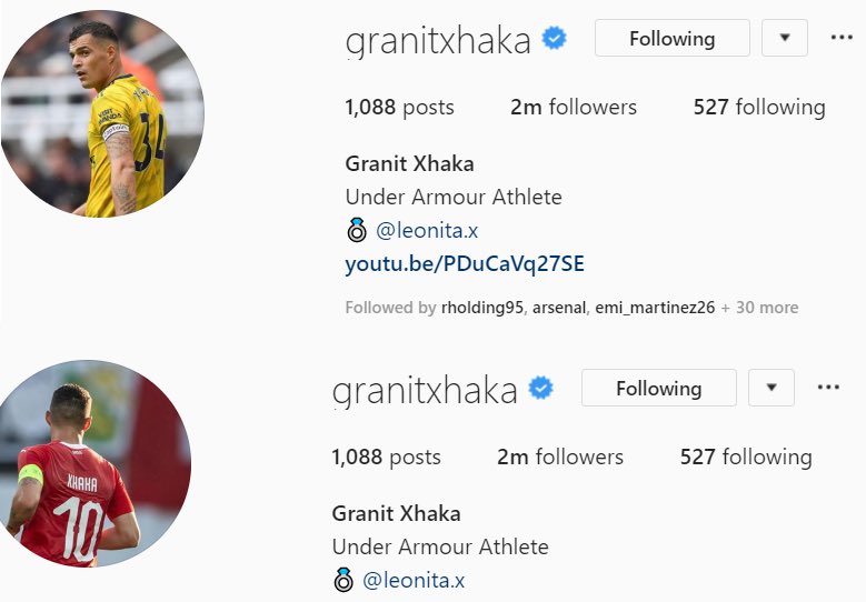 Полузащитник «Арсенала» Гранит Джака изменил фото своего профиля в инстаграме.