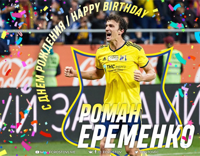 «С днем рождения, волшебник. 19 марта день рождения празднует полузащитник и один из лидеров «Ростова» Роман Еременко.