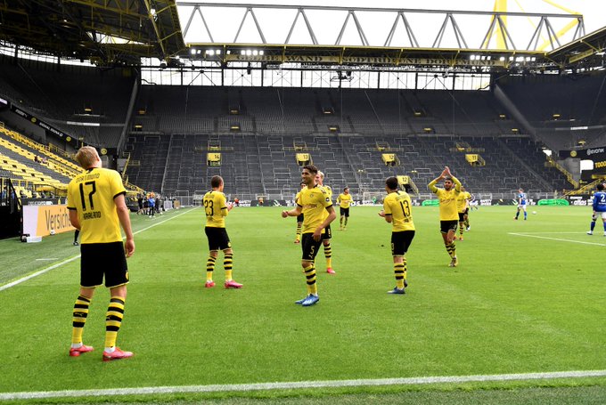 В эти минуты проходит матч 26-го тура чемпионата Германии между дортмундской «Боруссией» и «Шальке». Футболисты по ходу игры должны соблюдать меры предосторожности в условиях пандемии коронавируса.