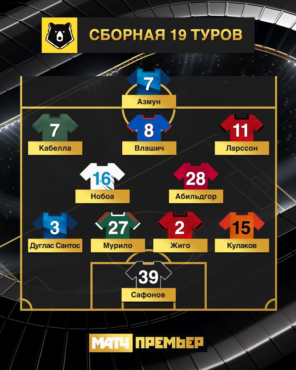 Сервис спортивной статистики Opta опубликовал символическую сборную первой части сезона РПЛ. Ни одна из команд не представлена более чем двумя футболистами.