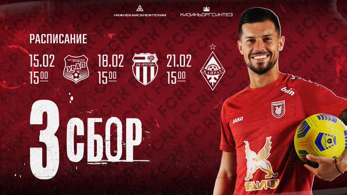 Замена соперника. В третьем матче на сборе вместо «Ротора» «Рубин» сыграет с командой «Кайрат». Игра состоится 21 января», – написали казанцы.