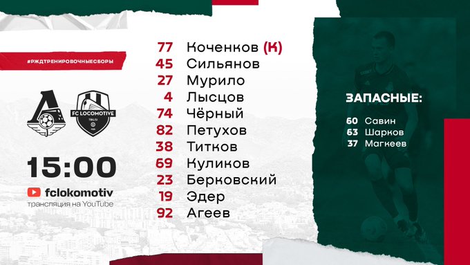 «Локомотив»: Коченков, Сильянов, Мурило, Лысцов, Черный, Петухов, Титков, Куликов, Берковский, Эдер, Агеев.