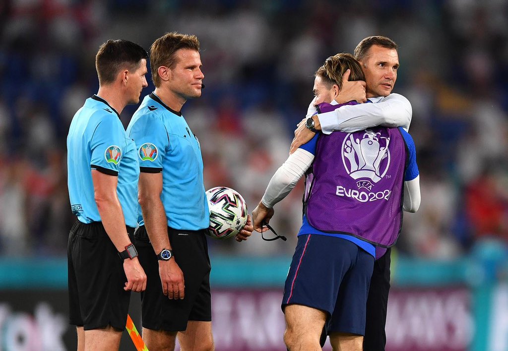 Полузащитник сборной Англии Джек Грилиш пообщался с главным тренером сборной Украины Андреем Шевченко. Британец поблагодарил украинца.