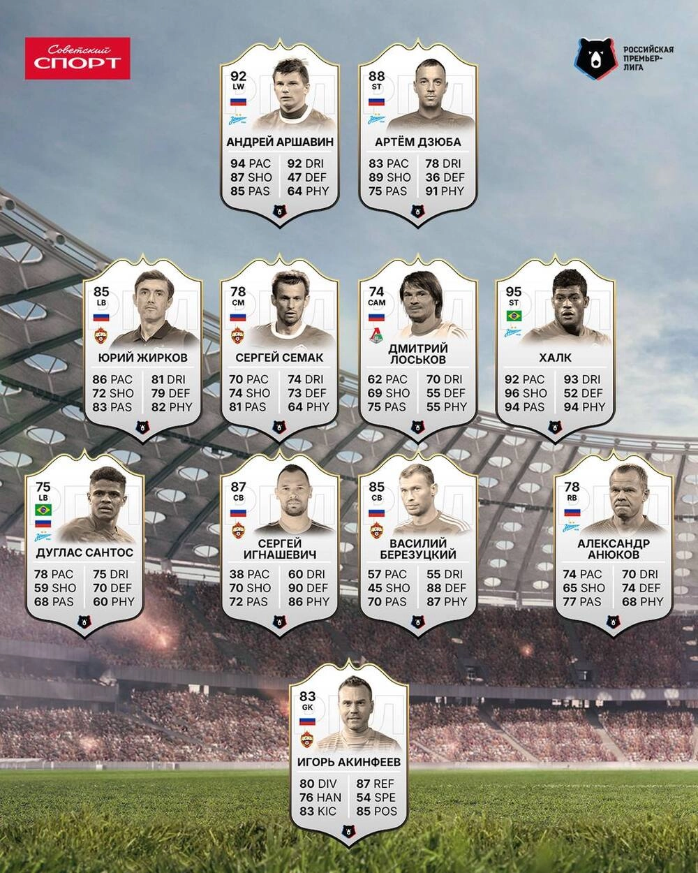 В команду попали 11 игроков, чьи достижения стали частью истории российского футбола», – написали составители.