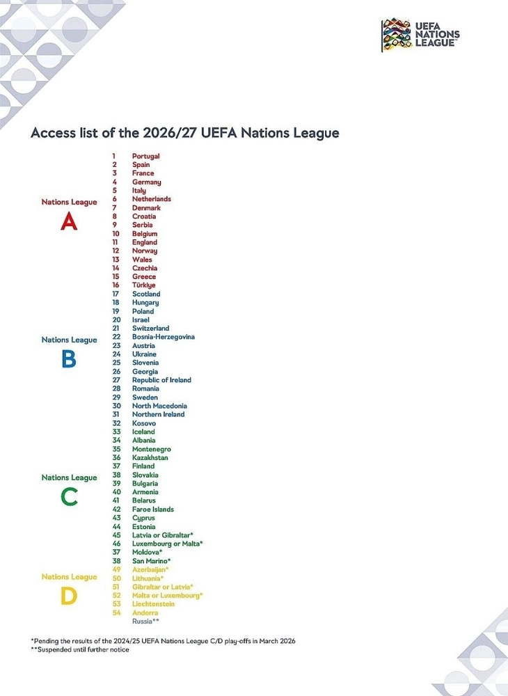 УЕФА готовит сезон Лиги наций-2026/27. Все сборные до 9 января 2026 года должны направить заявки.