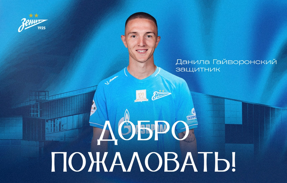 Защитник Данила Гайворонский подписал контракт с «Зенитом» и будет выступать за вторую команду петербуржцев.