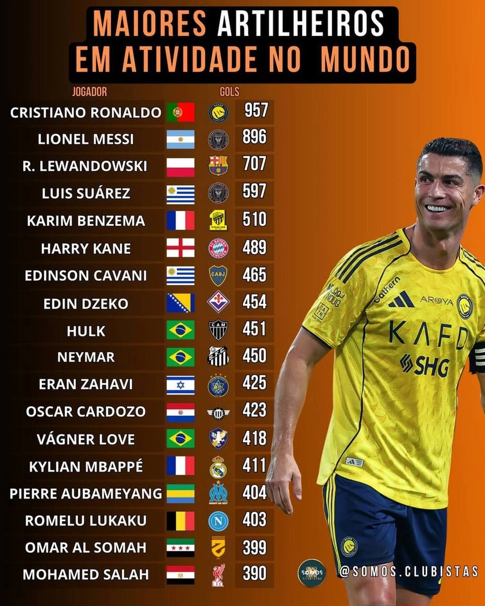 Больше всех в этом веке забил Криштиану Роналду. В топ-3 также попали Лионель Месси и Роберт Левандовски. Все трое продолжают карьеру.