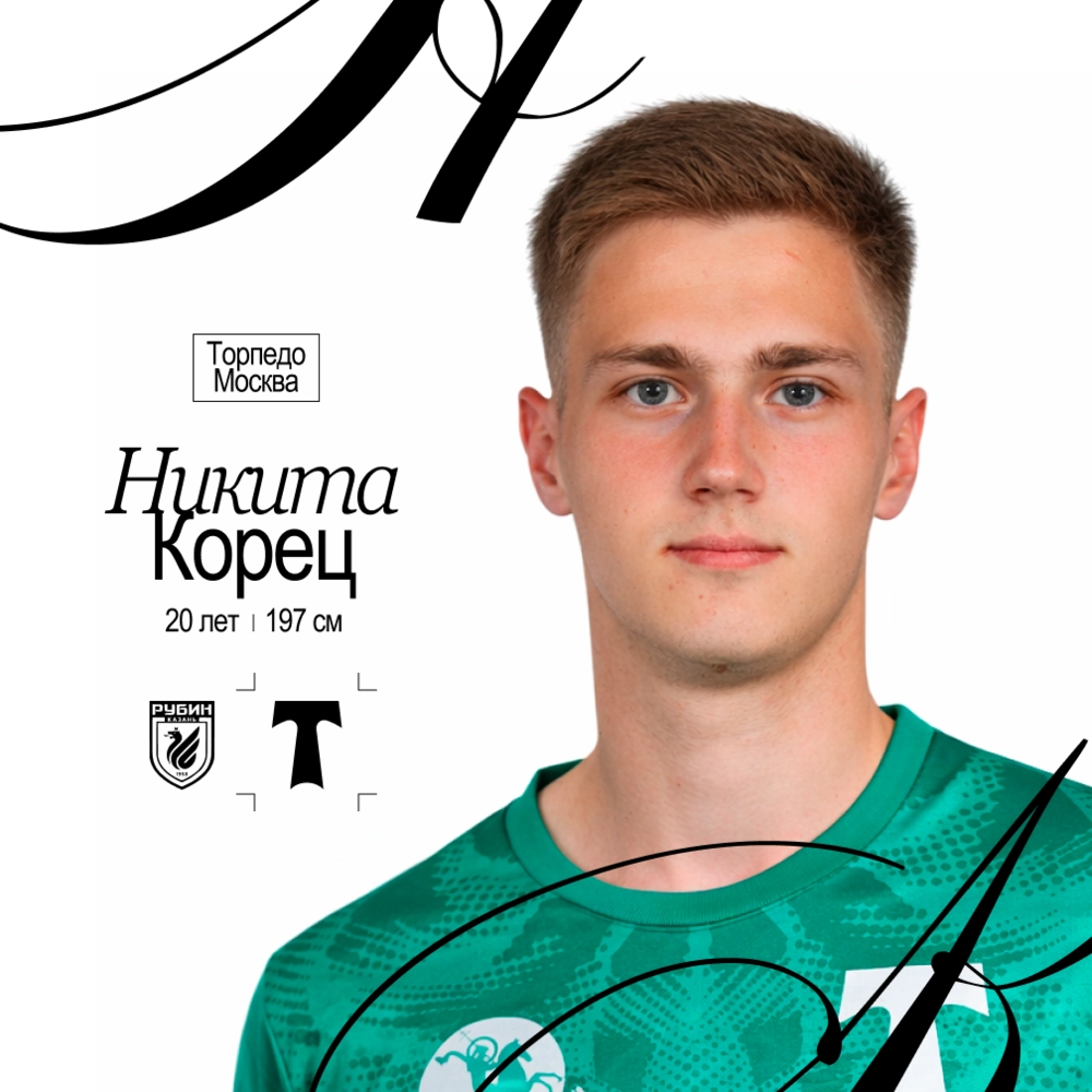 Вратарь Никита Корец перешел в «Торпедо» на правах аренды из «Рубина» до конца 2026 года.