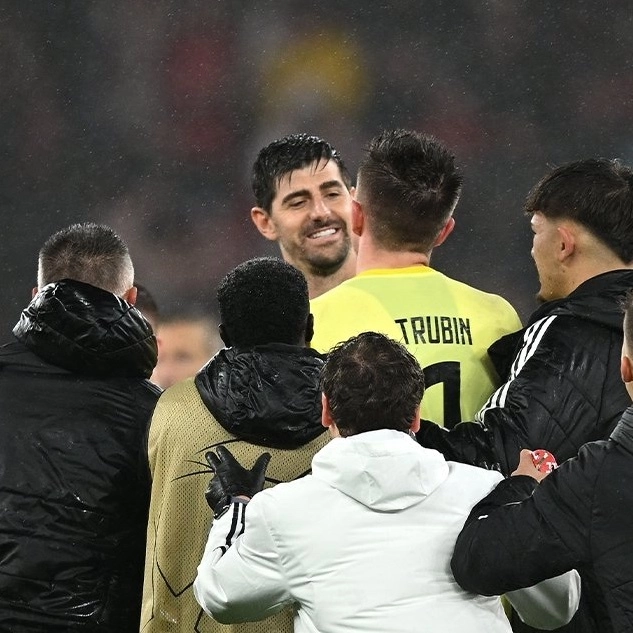 Трубин не сдерживал эмоций в окружении радостных партнеров, а после финального свистка получил персональный респект от Тибо Куртуа.