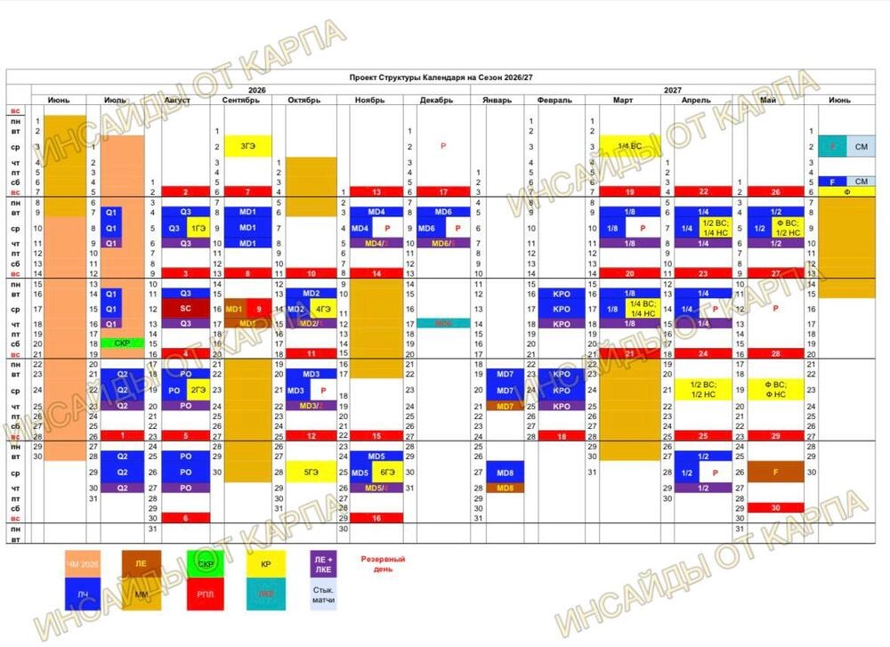Стали известен предварительный календарь российского футбольного сезона-2026/27.