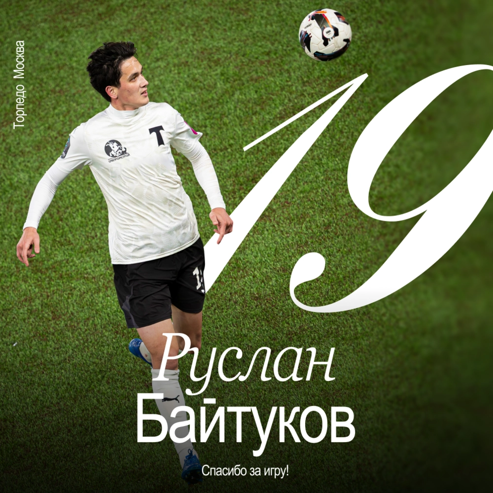 «Байтуков выступал за чeрно-белых с июня 2024 года. За это время он провeл 33 матча, в которых сделал 1 результативную передачу. Руслан, благодарим за игру и желаем удачи в дальнейшей карьере!», – говорится в сообщении москвичей.