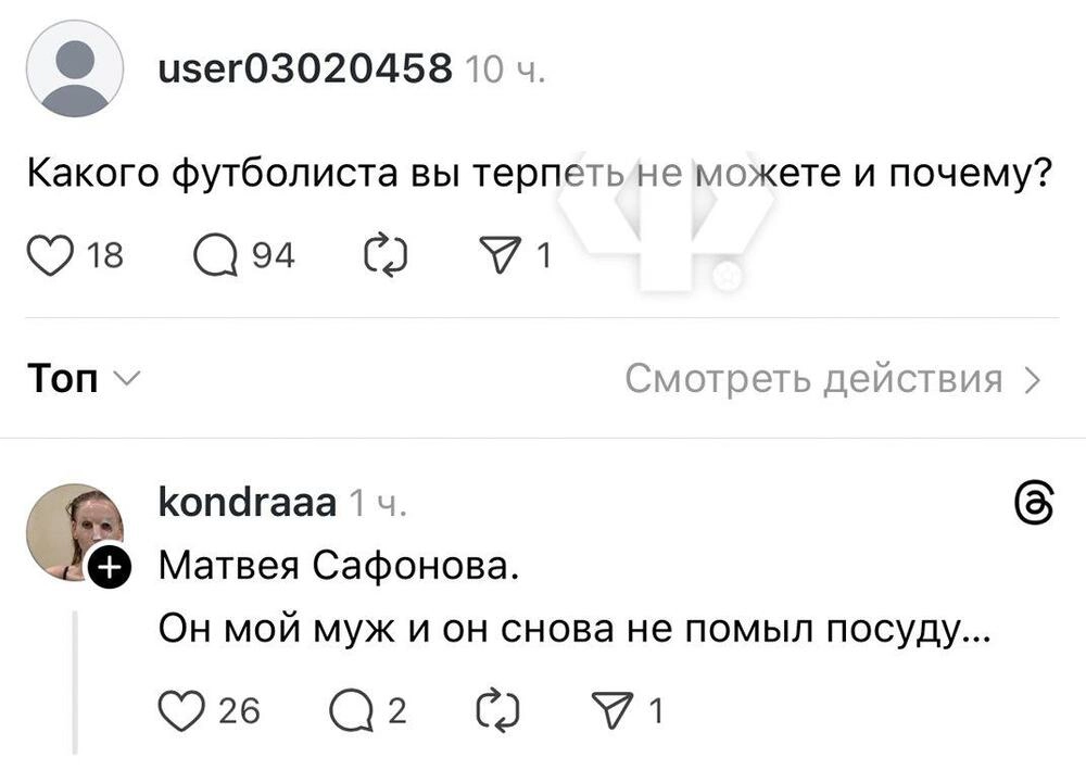 «Матвея Сафонова. Он мой муж, и он снова не помыл посуду», – написала Марина.