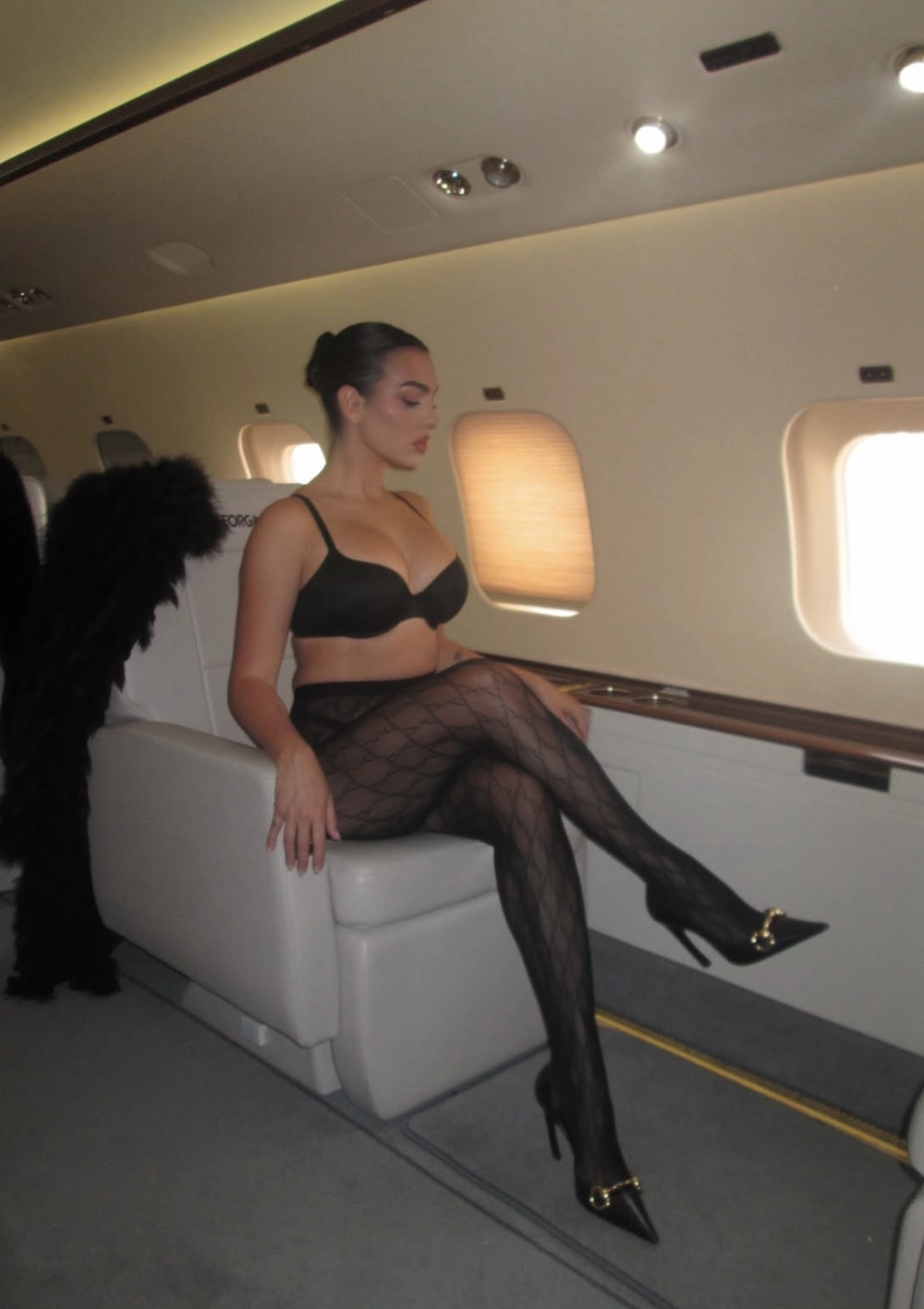 Невеста и мать детей Криштиану Роналду откровенное опубликовала фото из самолета. На ней колготки и бюстгальтер.