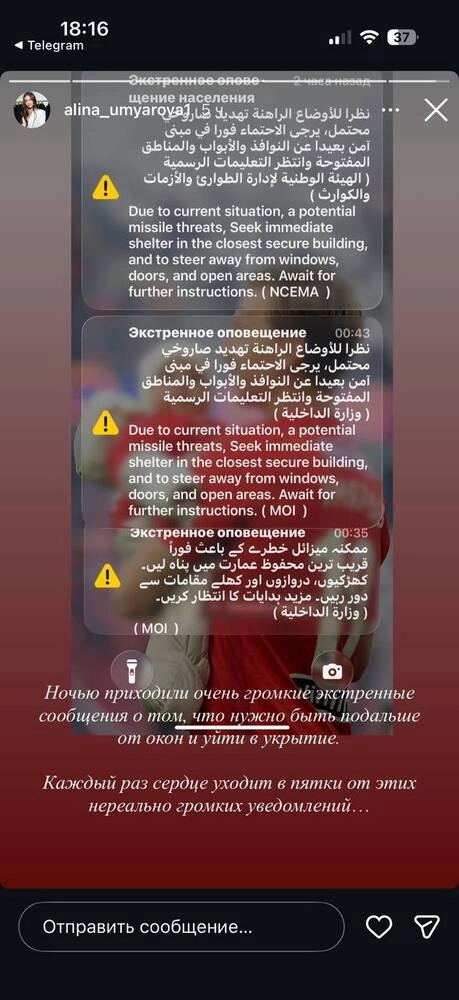 Ситуацию Умярова изложила в соцсети. Известно, что российские дипломаты предпринимают меры по эвакуации российских граждан из атакуемых государств Ближнего Востока.