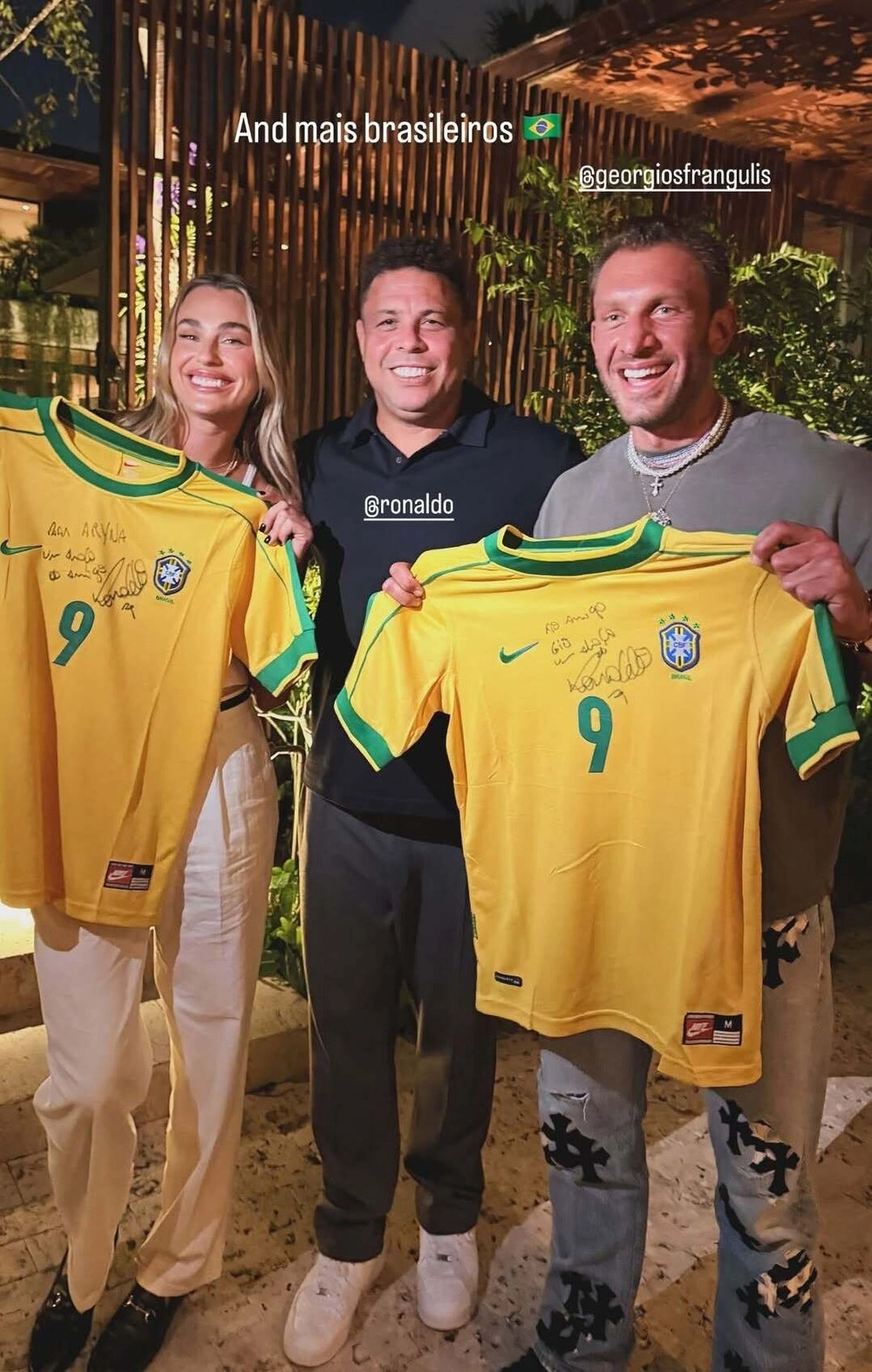 Он подарил Арине и Георгиосу по футболке сборной Бразилии с 9-м номером и личным автографом.