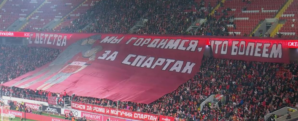 «С детства мы гордимся, что болеем за «Спартак», – сообщается на баннере красно-белых.