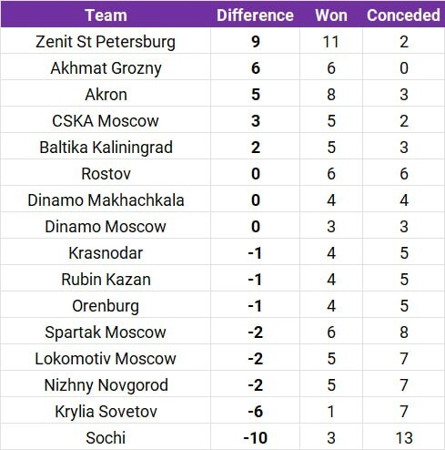 Именно у петербуржцев лучшее соотношение назначенных в свои и чужие ворота 11-метровых ударов. В их ворота назначили два удара, в чужие – 11. Разница – плюс девять.