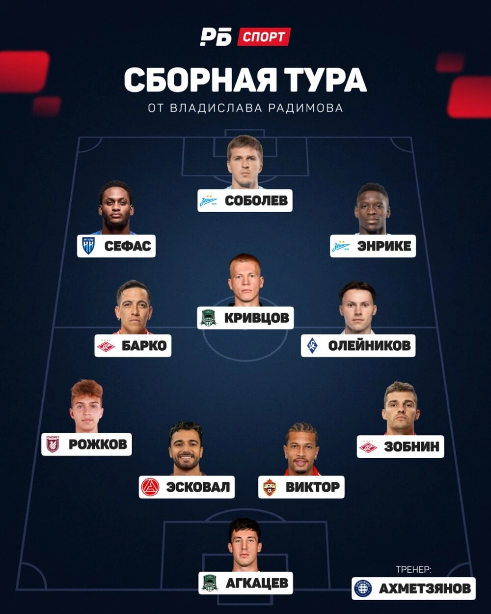 Бывший игрок сборной России Владислав Радимов определил символическую сборную 27-го тура РПЛ.