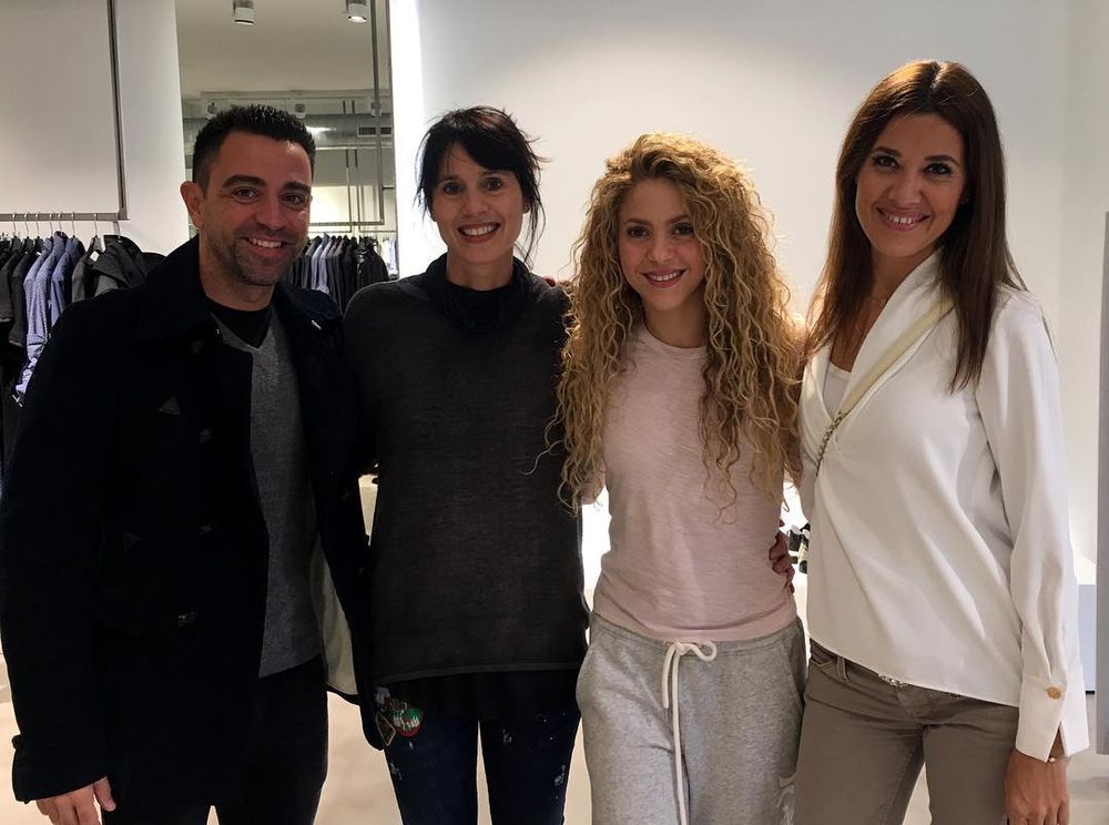 Кристина Серра на фото между Хави и Шакирой.